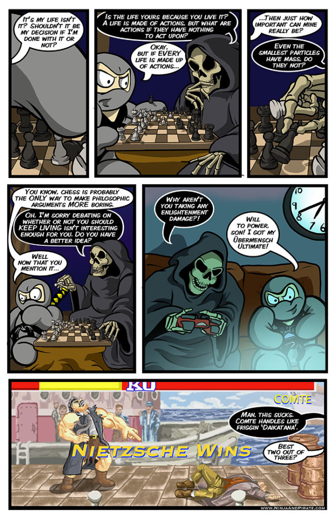 Honestly, it’s not fair that Ninja chose Nietzsche. No matter what he counters everything with ‘So what we’re all gonna be dead soon.’ The only fighter more broken is Freud, but that’s only because even though his control scheme makes[…]↓ Read the rest of this entry…