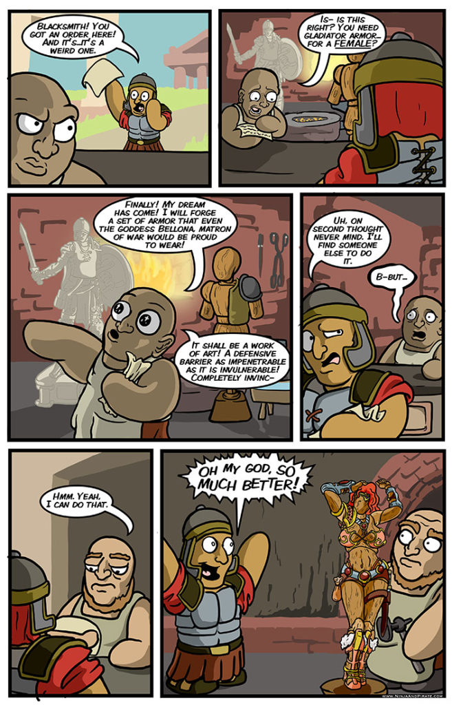 Guys get so much armor that we can’t breathe or move. Girls get so much armor you could pack it in a thermos. Yet they cost the same. I assume.