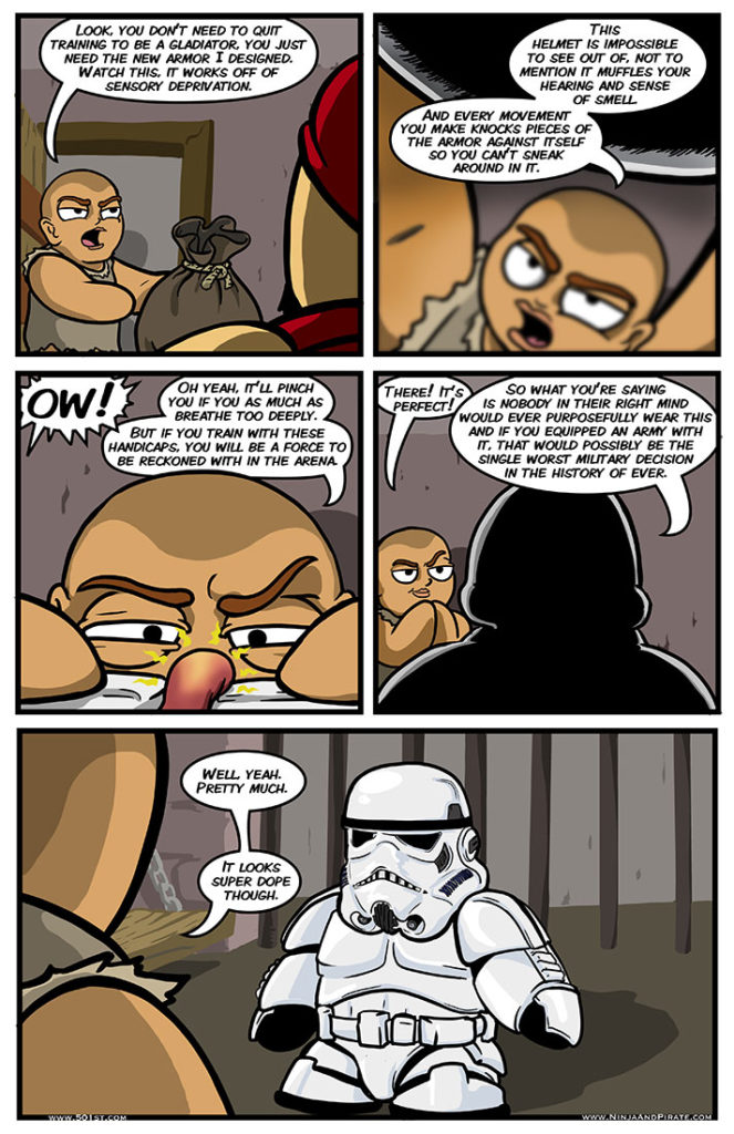 This is my 501st comic! As such I wanted to pay tribute to a wonderful organization called the 501st. This is a collection of absolutely insane individuals who spend countless time and money out of their own pocket to build[…]↓ Read the rest of this entry…