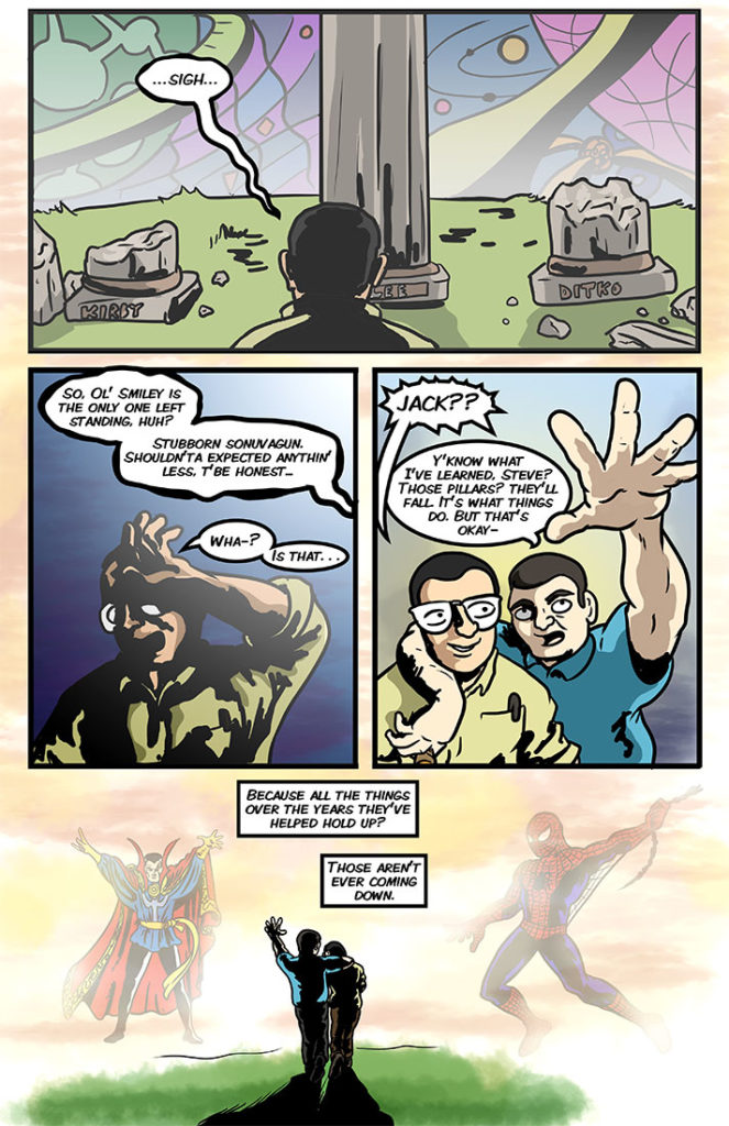 I learned that Steve Ditko passed at 930 last night. So I scrapped the next story comic in order to pay tribute to the second member of the trifecta. It was Kirby, Ditko, and Lee that were the three pillars[…]↓ Read the rest of this entry…
