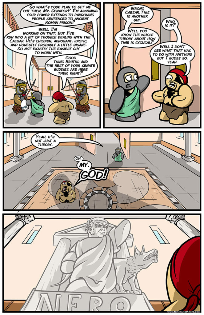 I like the idea that the statue from the previous comic is holding his hand up like he’s stopping people from going into the library. You know, wanting to prevent people from learning the rules and laws that keep them[…]↓ Read the rest of this entry…