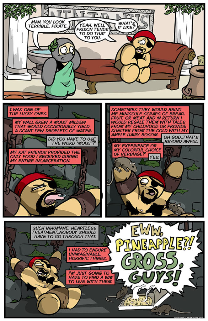 Oranges don’t belong on pizza. Pineapple on the other hand DOES. Pineapple and ham is DELICIOUS. It’s sweet, the ham is savory, and the best kinds have bacon- salty. It’s the perfect pizza and anyone who says otherwise is wrong.[…]↓ Read the rest of this entry…
