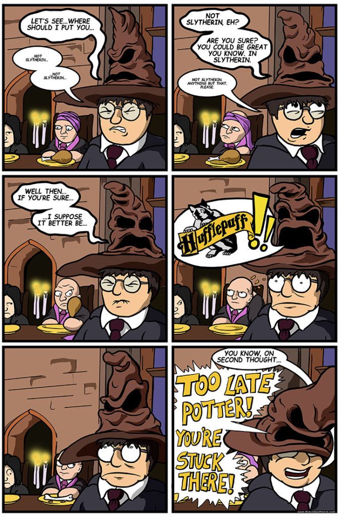 “I’m an omniscient hat, you lightning bolted bonehead! I sorted Merlin into his house! Merlin! But no, excuse me! You must certainly know more than I do even though I can see YOUR FRIGGIN FUTURE!! BY THE WAY INVEST IN[…]↓ Read the rest of this entry…